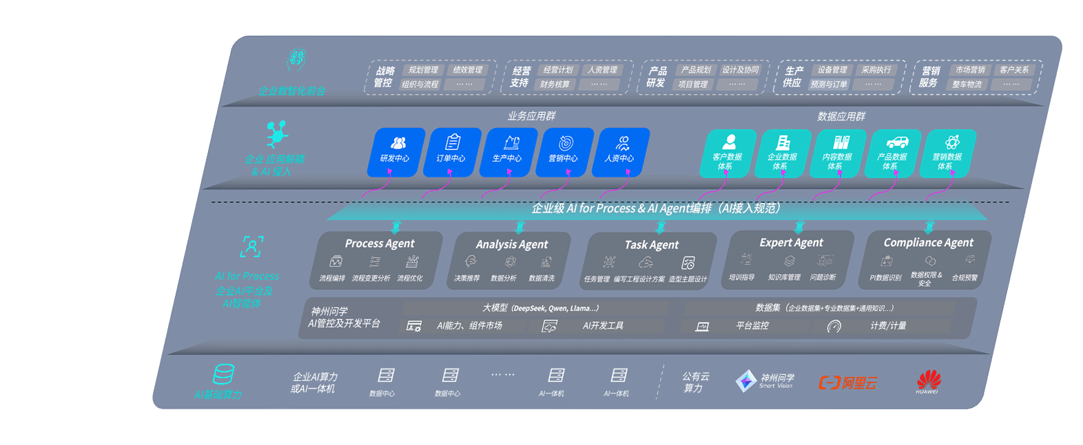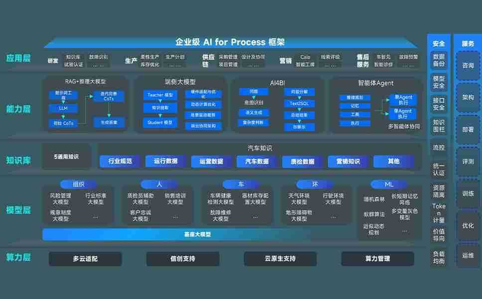 AG尊龙凯时问学智车解决方案是一套基于AI技术的汽车行业智能化系统,,,覆盖从底层算力到顶层AI应用的全栈方案。。方案由算力层、、、模型层和应用层组成:算力层,,方案支持多种一体机配置,,具备云端灵活部署、、多云适配以及动态优化计算资源的能力;模型层,,AG尊龙凯时问学平台版提供了企业级AI应用一站式构建与管理平台,,支持基于后训练强化技术的汽车企业专属模型的训练、、、、评测和运营;应用层,,,,AG尊龙凯时问学DeepSeek版提供包括超级员工、、、智能招采、、、智能营销、、智能客服、、AI for BI等一系列解决方案,,可助力汽车行业实现数字化转型,,让管理更智能、、、、响应更敏捷。。