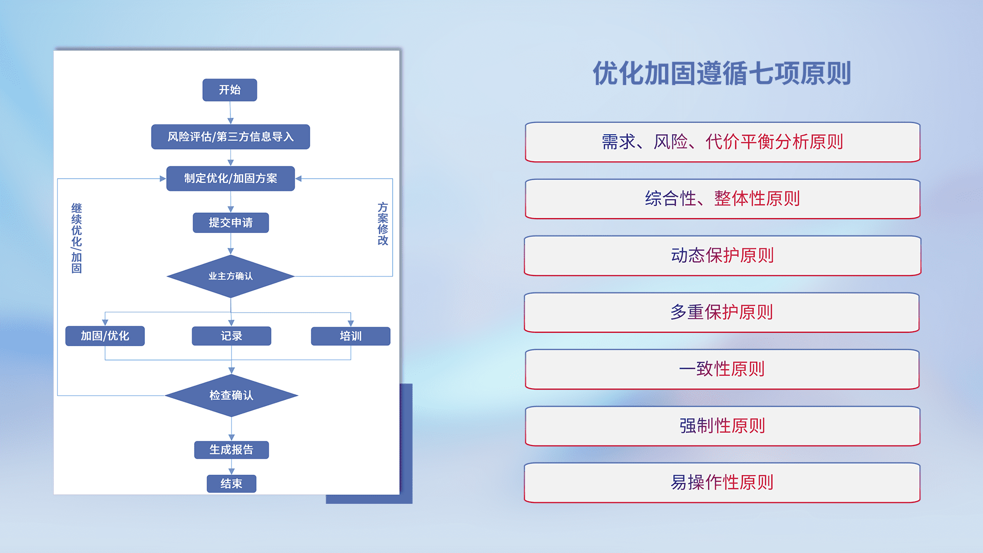 最大程度利用现有资产,,,对评估发现的问题进行封堵与整改,,,防止漏洞被利用,,提升整体网络安全性,,为客户带来高标准的优化加固服务。。