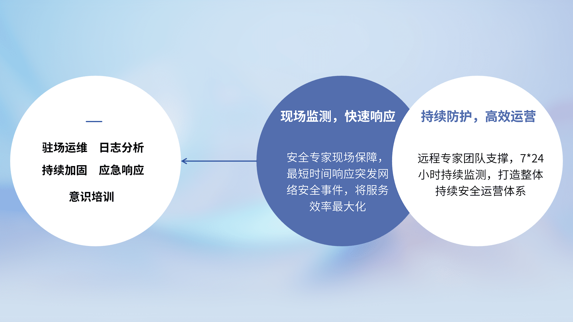 针对客户行业特性,,,,提供专属的一站式安全管理服务,,,帮助客户全面感知网络空间威胁,,,通过安全专家的线上、、线下防护支持,,,实现风险闭环,,,将安全保障常态化,,,,为客户打造常态化安全运维运营服务。。。。